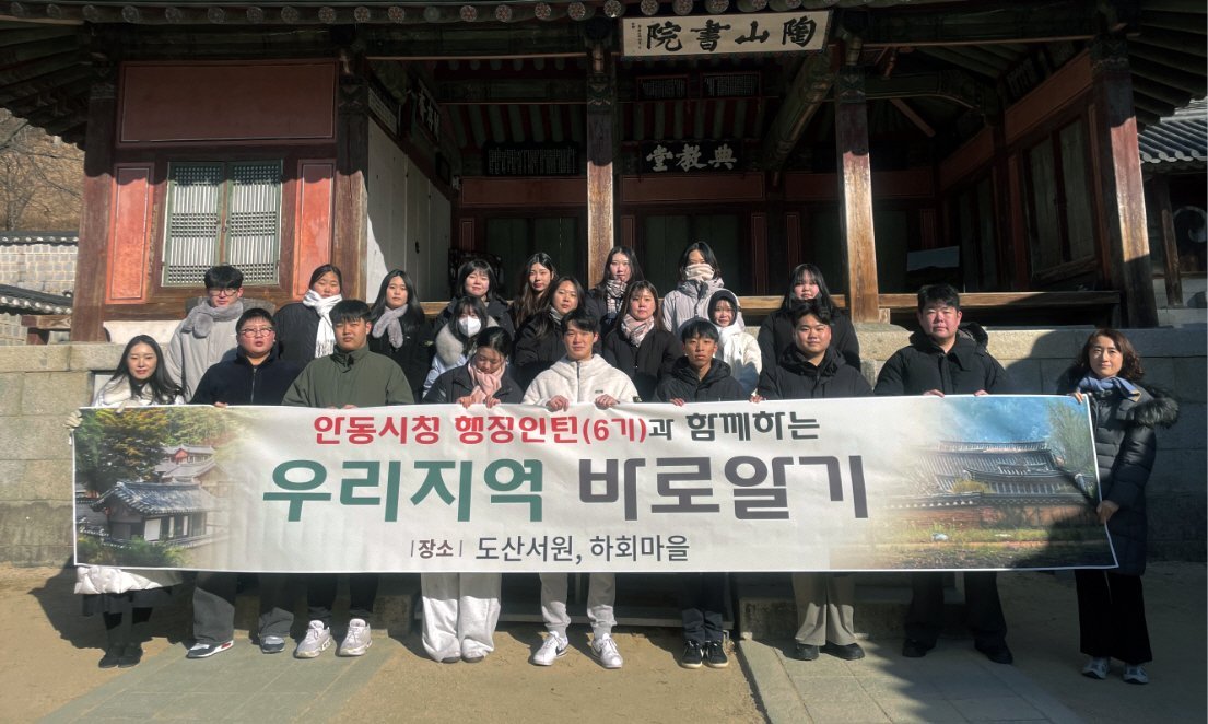 특히 행정인턴들은 ‘우리지역 바로알기 프로그램’을 통해 1월 21일 도산서원 방문을 시작으로 28일까지 하회마을 등 지역의 주요 역사․문화 현장을 직접 방문하며 행정이 이뤄지는 공간과 지역 자산에 대한 이해를 넓히는 시간을 갖는다.