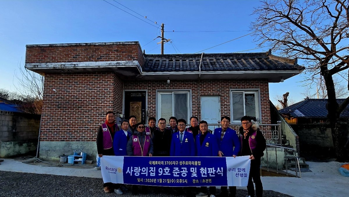 [한국Q뉴스] 국제로타리 3700지구 성주로타리 클럽은 1월 22일 성주군 초전면에서 '사랑의 집짓기 9호'준공 및 현판식을 개최했다.