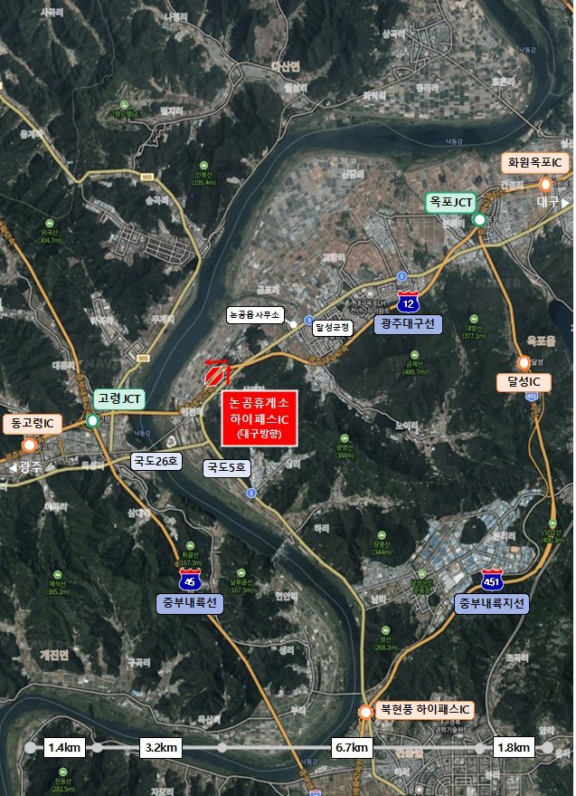 [한국Q뉴스] 달성군 논공읍 주민들이 그동안 고속도로를 이용하기 위해 인근 시·군까지 이동해야 했던 불편이 해소된다. 국토교통부는 광주-대구 고속도로 논공휴게소에 일방향 하이패스IC*를 신설하는 고속도로 연결허가를 승인했다.