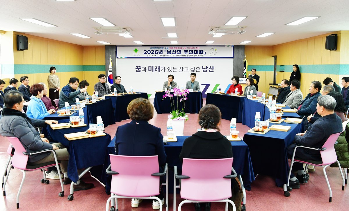 [한국Q뉴스] 경산시는 26일 남산면 행정복지센터 대회의실에서 진행되는 2026년 남산면 주민과의 대화에 참석해 지역 현안을 점검하고 주민들의 다양한 건의 사항을 경청하며 적극적인 소통에 나섰다.