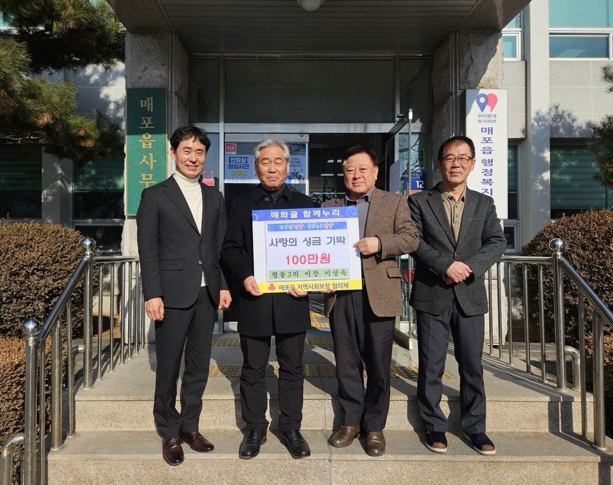 이상욱 이장은 “큰 금액은 아니지만, 매포에서 살아오며 받은 정을 조금이나마 돌려드리고 싶었다”며 “올해도 도움이 필요한 이웃들에게 따뜻한 마음이 전해지길 바란다”고 말했다.