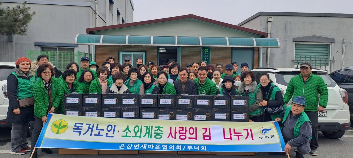 [한국Q뉴스] 부여군 은산면 새마을협의회·부녀회는 새해를 맞이해 추운 날씨 속에서도 소외계층을 위한 ‘사랑의 김 나누기’행사를 진행했다고 28일 밝혔다.