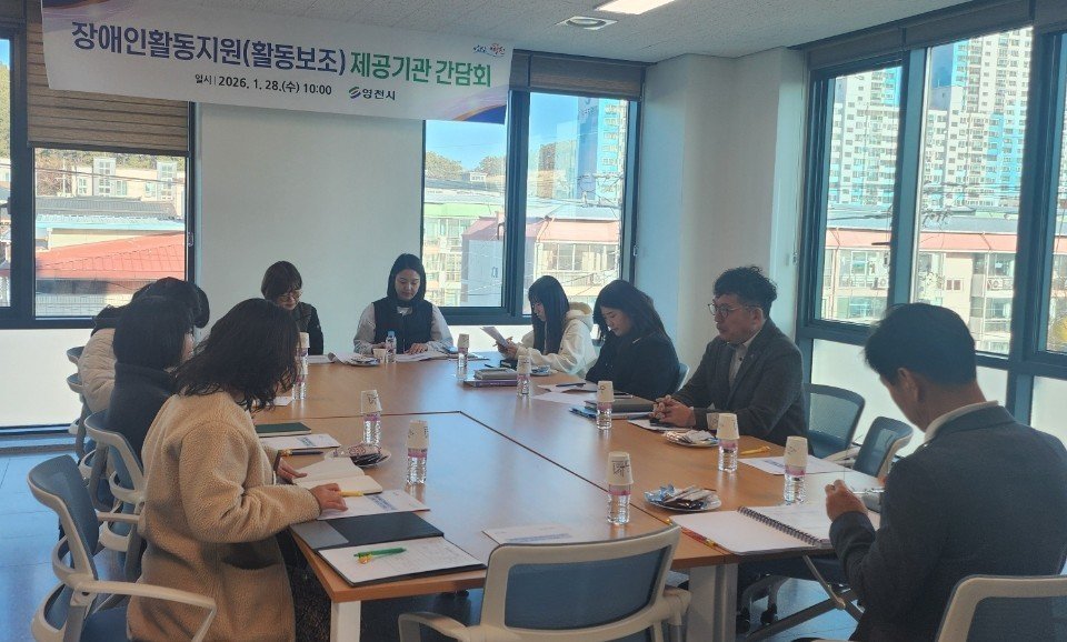 [한국Q뉴스] 영천시는 28일 장애인활동지원 담당자와 장애인종합복지관, 지역자활센터, 한국척수장애인협회 영천시지회 장애인활동지원 제공기관이 참석한 가운데 ‘장애인활동지원 제공기관 간담회’를 개최했다.