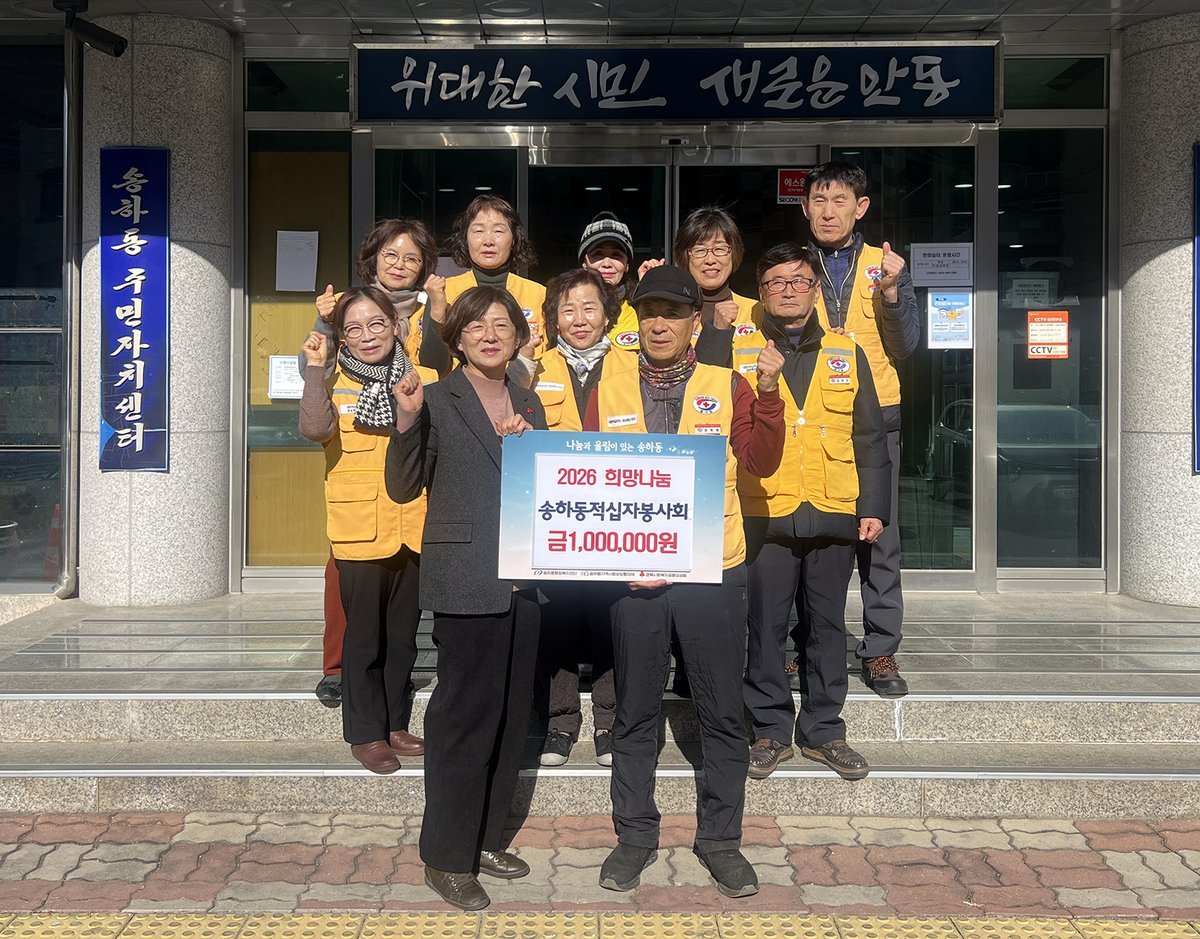 송하동 행정복지센터는 28일 ‘송하 적십자봉사회’와 ‘송하동 주민자치회’가 각각 희망나눔 성금 100만원을 기탁하며 2026년 나눔의 포문을 열었다고 밝혔다.