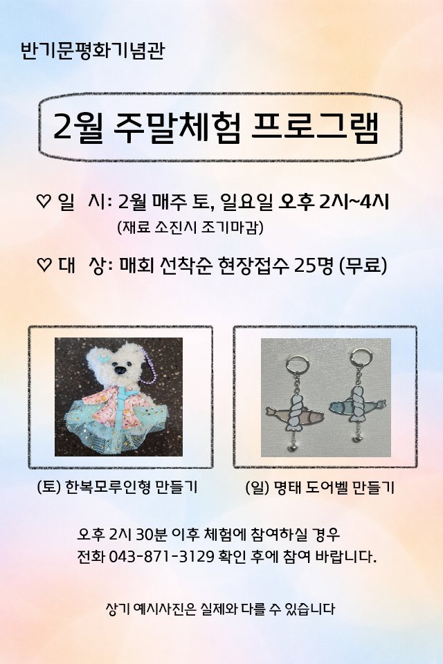 해당 프로그램은 2월 1일부터 한 달 동안 매주 토·일요일 오후 2시부터 4시까지 진행된다.