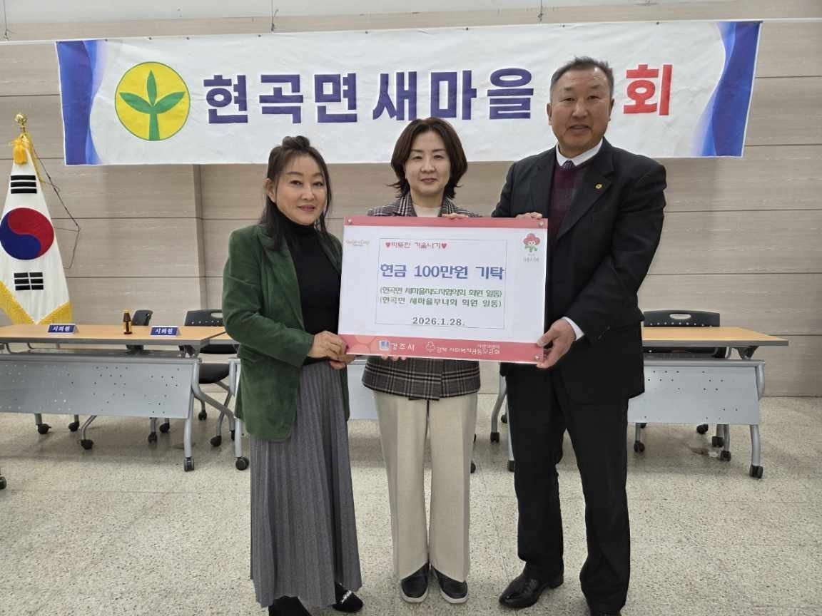 [한국Q뉴스] 현곡면 새마을지도자협의회 및 새마을부녀회는 1월28일 어려운 이웃들이 따뜻한 겨울을 보낼 수 있도록 불우이웃돕기 성금 100만원을 현곡면사무소에 전달하며 지역사회 나눔 문화 확산에 훈훈한 기운을 불어넣었다.