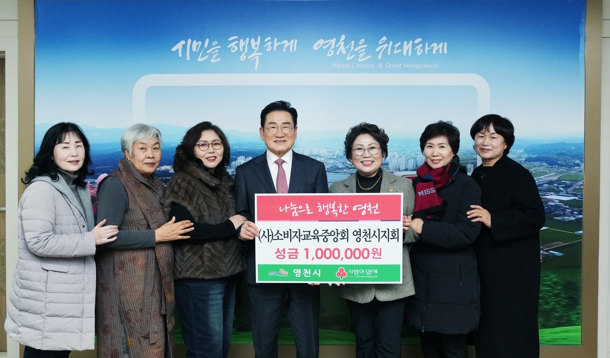 [한국Q뉴스] 영천시는 지난 26일 소비자교육중앙회 영천시지회 100만원, 28일 ㈜케이디에서 500만원, 한국여성유권자연맹 영천시지회에서 성금 50만원을 기탁했다고 밝혔다.
