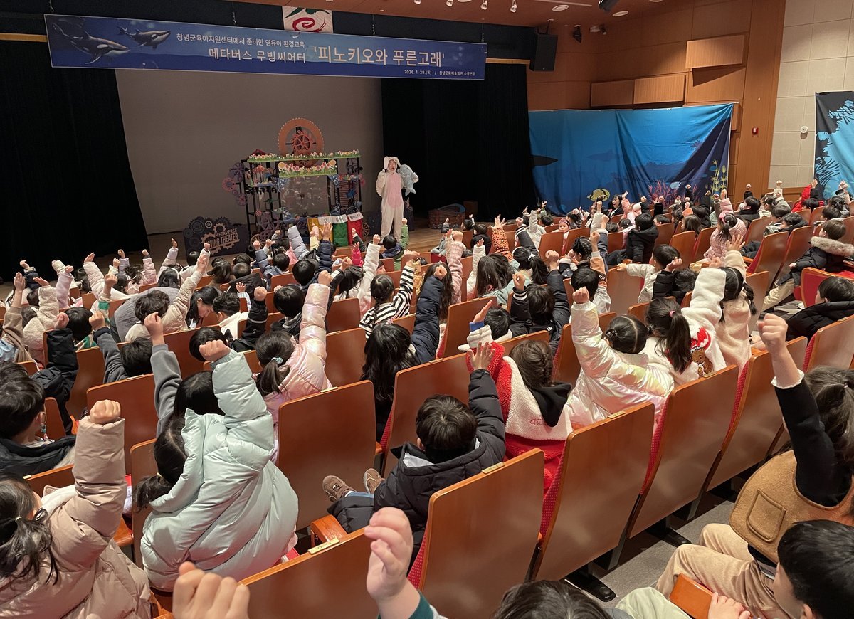 [한국Q뉴스] 창녕군육아지원센터는 29일 창녕문화예술회관 소공연장에서 관내 영유아와 보호자 300여명을 대상으로 메타버스 무빙씨어터 '피노키오와 푸른 고래'공연을 두 차례에 걸쳐 성공적으로 개최했다.