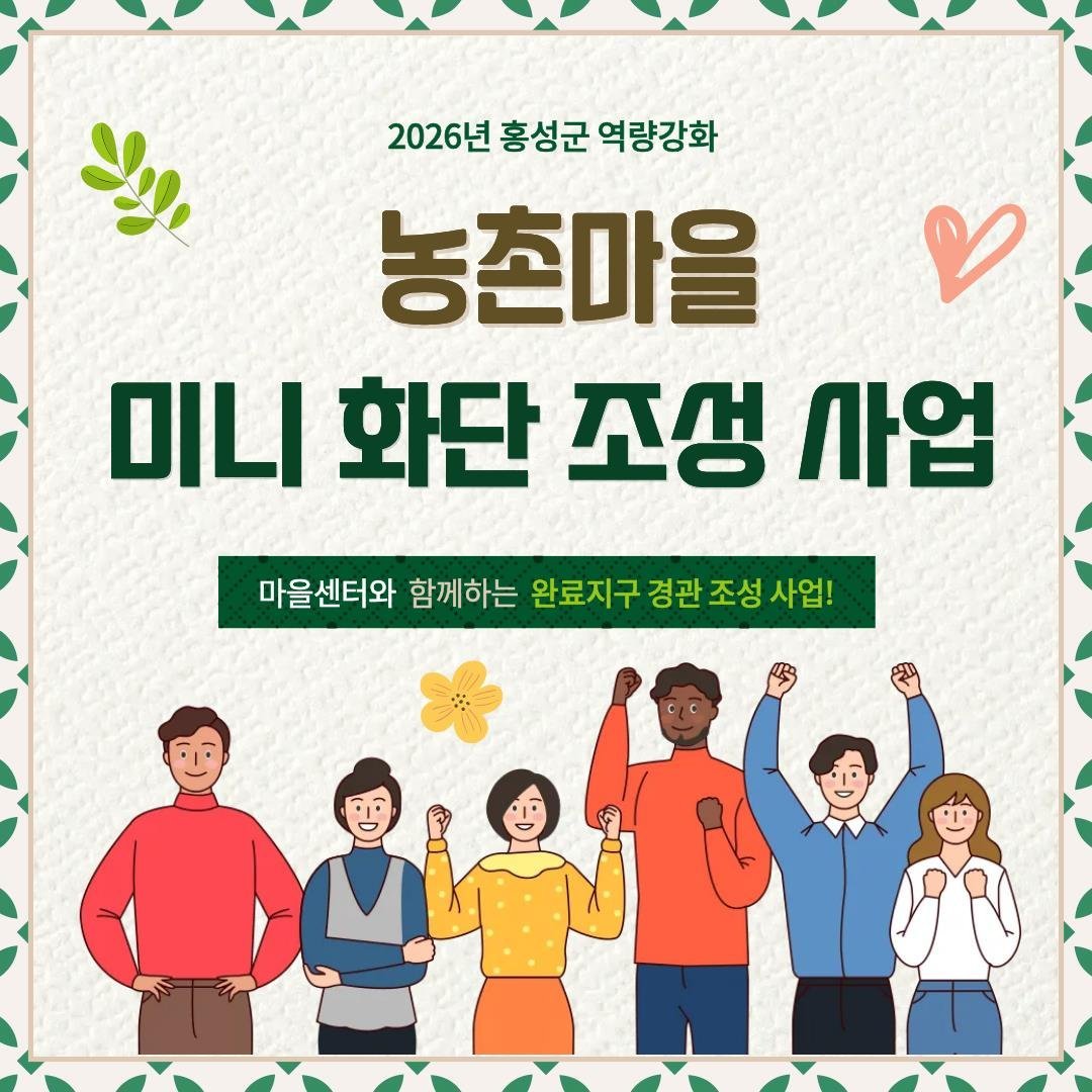 [한국Q뉴스] 홍성군 마을만들기지원센터는 완료지구 경관 조성 사업에 참여할 농촌마을을 오는 13일까지 모집한다고 밝혔다.
