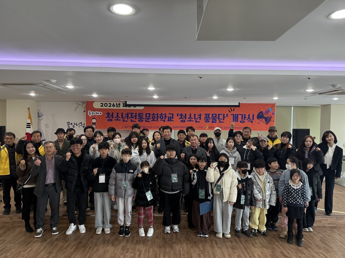 [한국Q뉴스] 금산군은 1월 31일 금산읍 청산회관 여성창의문화센터에서 지역 청소년들의 전통문화 계승과 예술적 감수성 함양을 위한 2026년 제3기 청소년전통문화학교 청소년 풍물단 개강식을 성료했다.