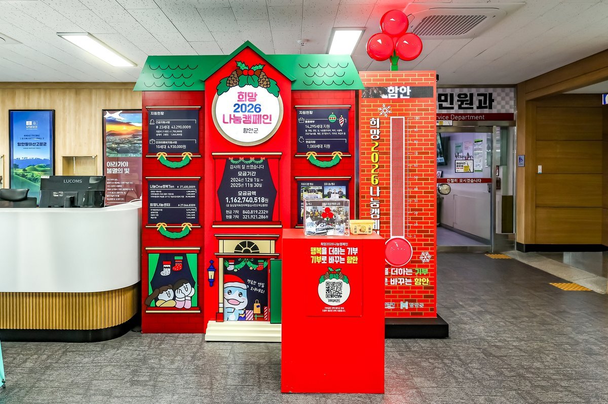 [한국Q뉴스] 함안군은 연말연시를 맞아 어려운 이웃을 돕기 위해 추진한 '희망 2026 나눔 캠페인'에서 목표액 18억 4752만원 대비 41억 6669만원을 모금해 목표 대비 225%를 달성하는 성과를 거뒀다고 2일 밝혔다.