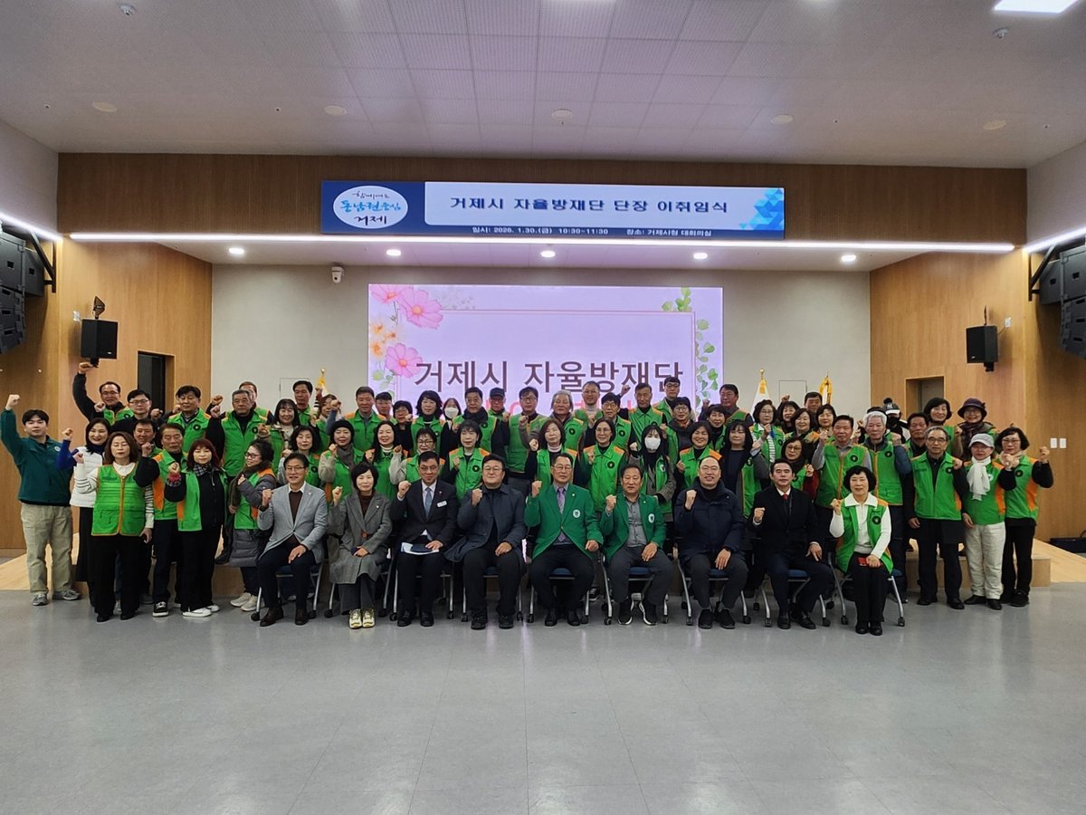 [한국Q뉴스] 지난 1월 30일 거제시청 대회의실에서 100여명이 참석한 가운데'거제시 자율방재단 단장 이·취임식'을 개최했다.