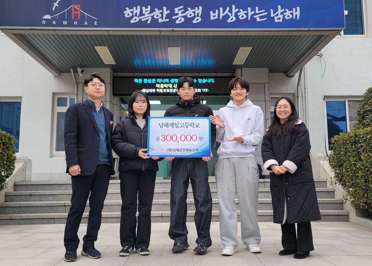 남해제일고 학생들은 “지난 2025년 연말에 열린 학교 축제 ‘메나리제’에서 간식 판매와 체험 활동비를 100원, 500원으로 소액으로 책정해 운영했고 그 과정에서 모인 수익금을 전액 기부하고자 한다. 많은 학생들이 함께 참여해 모은 마음이 지역 초등학생들이 더 큰 꿈을 키워나가는데 작은 씨앗이 되기를 바라는 마음으로 기부한다”고 밝혔다.