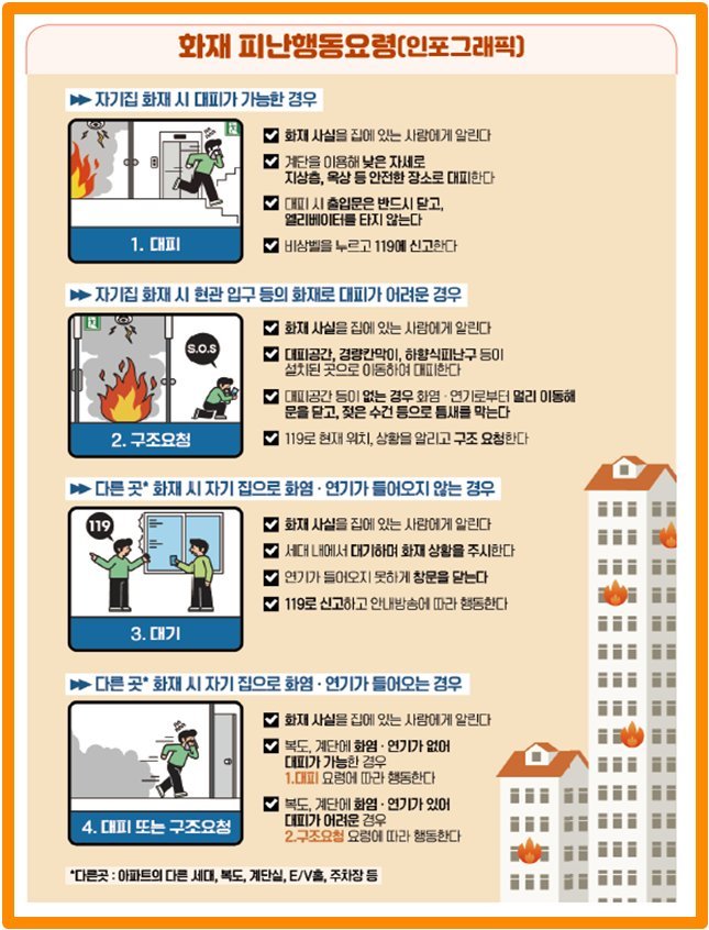황기연 예방정책국장은 “주택화재로부터 안전을 지키기 위해서는 평소 대피동선과 상황별 행동요령을 꼭 숙지하고, 실제 화재 시 당황하지 않고 올바른 방법으로 대피하는 것이 무엇보다 중요하다”라고 강조했다.