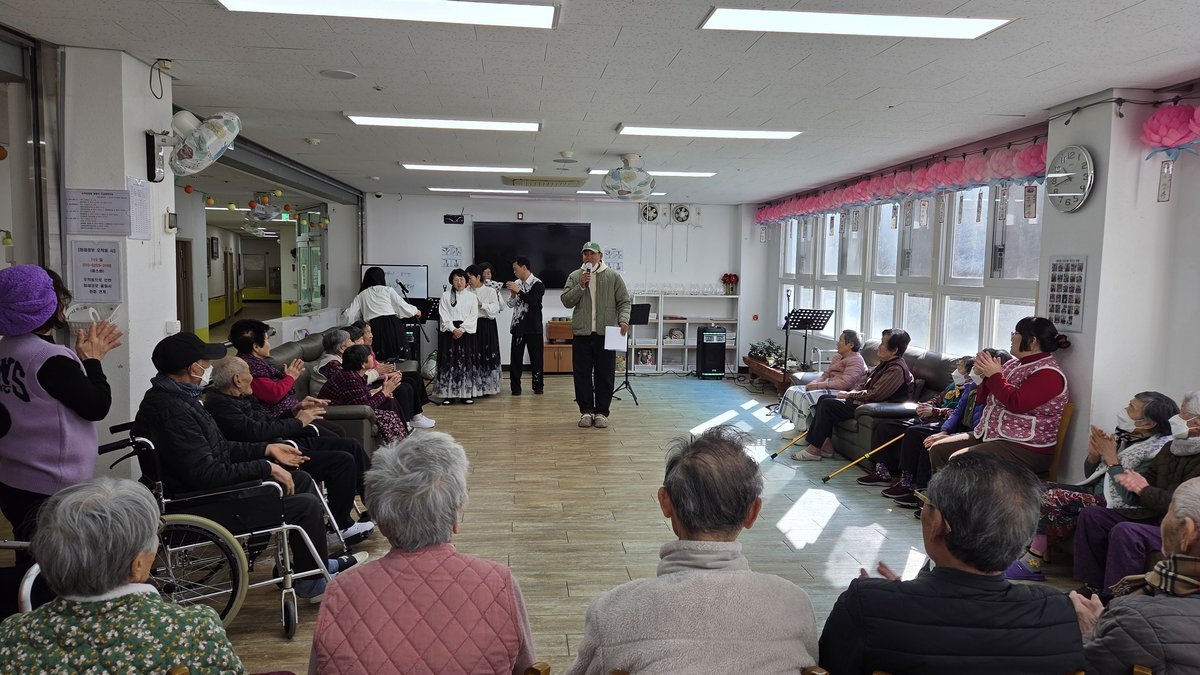 행복더하기 봉사단은 1월 31일 화방동산양로원을 방문해 오카리나 연주 공연을 비롯해, 청백전 게임, 다섯 고개 퀴즈 맞히기 등 다채로운 프로그램을 진행하며 어르신들에게 정서적 위로와 즐거움을 선사했다.