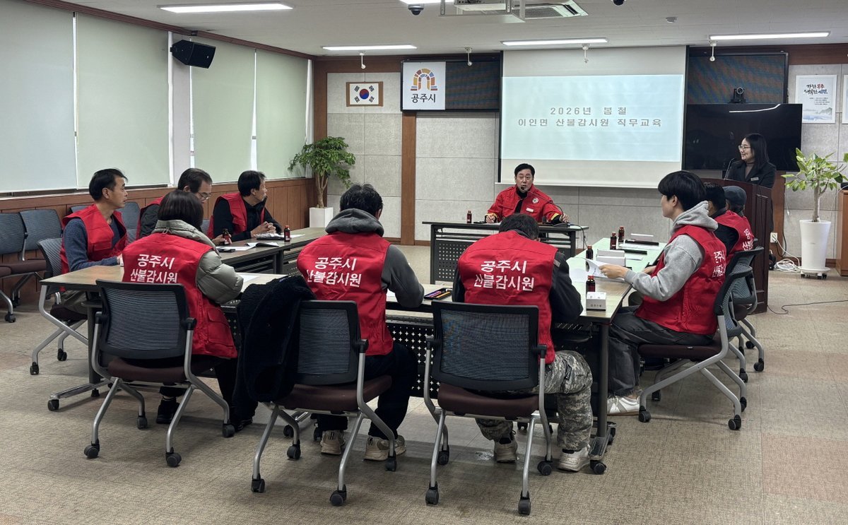 [한국Q뉴스] 공주시 이인면은 지난 2일 행정복지센터 회의실에서 2026년 봄철 산불감시원 9명을 대상으로 직무교육을 실시했다고 밝혔다.