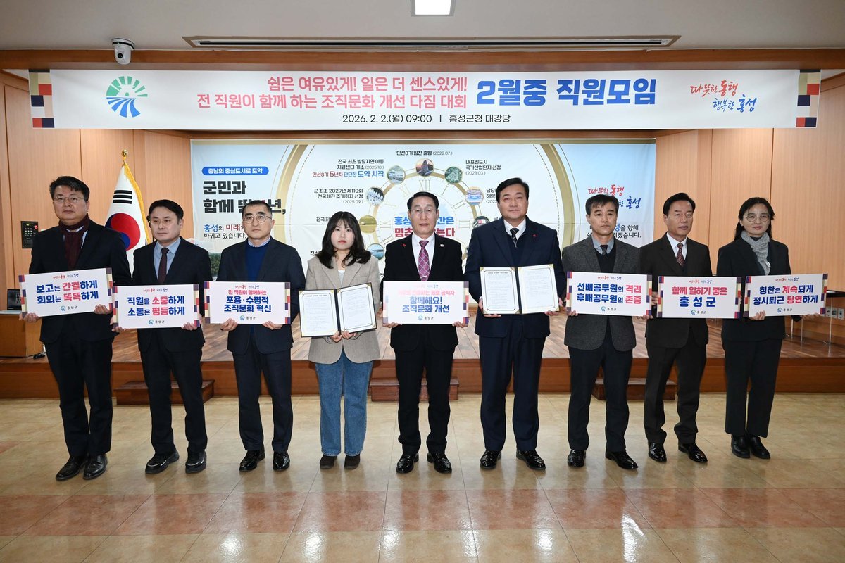 한편 홍성군은 지난해부터 포용·수평적 조직문화 개선을 위한 계획을 수립하고 소통길, 직원 모시는 날, 10대 근무혁신과제 운영 등을 통해 공직 내부의 긍정적이고 기분좋은 변화를 이끌고 있다.
