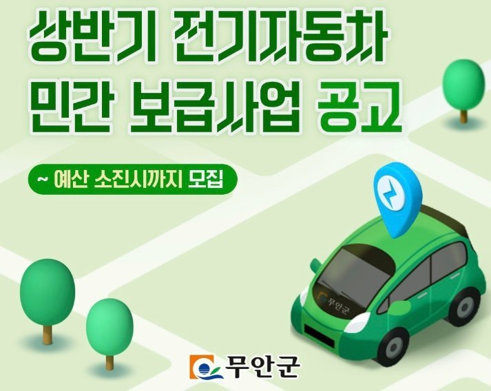 [한국Q뉴스] 무안군은 깨끗한 대기 환경 조성과 온실가스 감축 등 탄소중립 조기 실현을 위해 2월 9일부터 친환경 전기자동차 구매 지원사업을 시행한다.