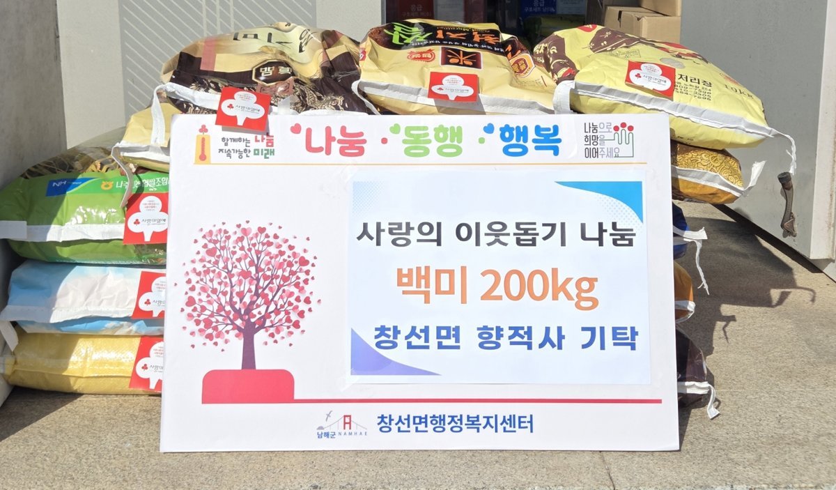 [한국Q뉴스] 창선면행정복지센터는 지난 2일 지역 사찰 향적사에서 지난 2쌀 200kg과 성금 100만원을 기탁했다고 밝혔다.