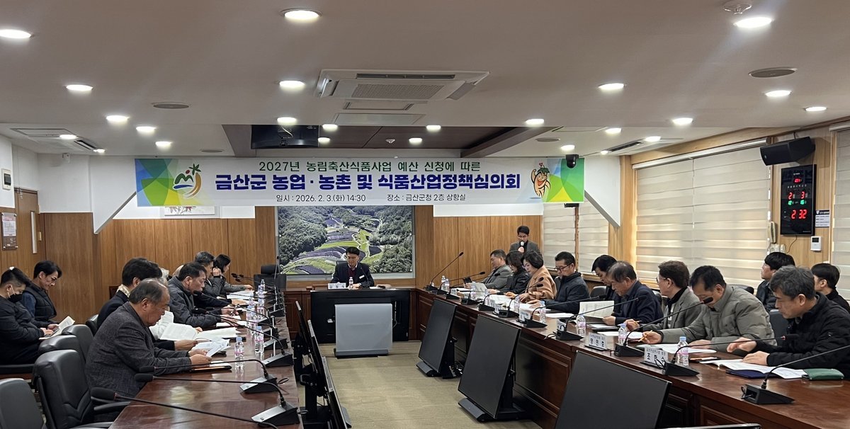 [한국Q뉴스] 금산군은 지난 3일 군청 상황실에서 농업·농촌 및 식품산업정책 심의위원과 관계공무원 등 약 40명이 참석한 가운데 2027년 농림사업 예산 신청에 따른 농업·농촌 및 식품산업정책심의회를 개최했다.
