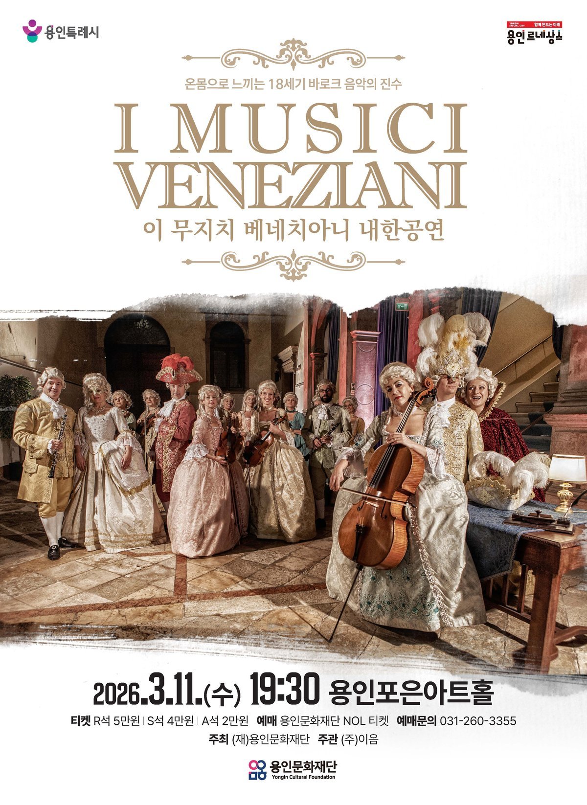 [한국Q뉴스] 용인문화재단은 오는 3월 11일 용인포은아트홀에서 세계적인 바로크 앙상블 '이 무지치 베네치아니'의 내한 공연을 개최한다.