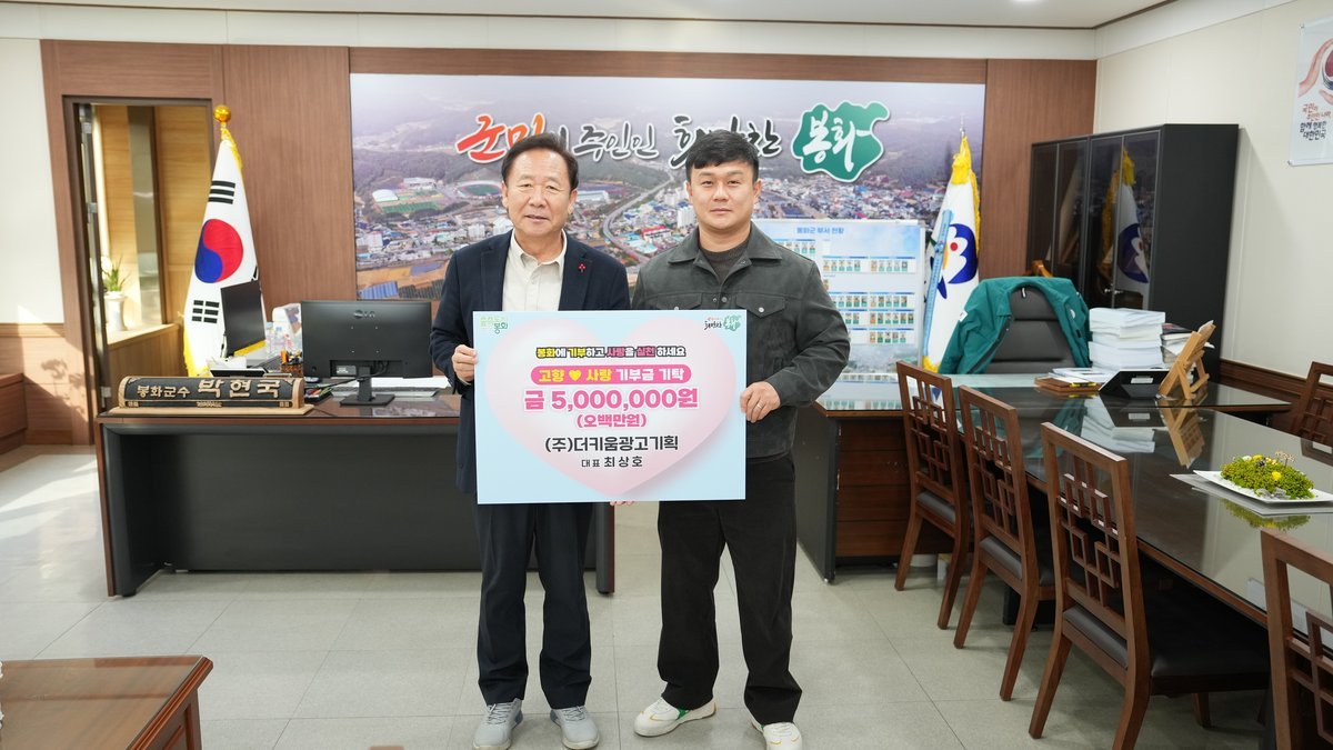 [한국Q뉴스] 더키움광고기획 최상호 대표가 2월 4일 봉화군청을 방문해 고향사랑기부금 500만원을 기탁했다.
