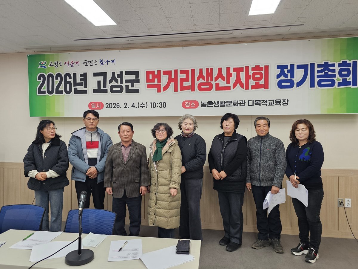 [한국Q뉴스] 고성군 먹거리생산자회는 2월 4일 고성군 농업기술센터 농촌 생활문화관에서 회원 25여명이 참석한 가운데 2026년 고성군 먹거리생산자회 정기총회를 개최했다.