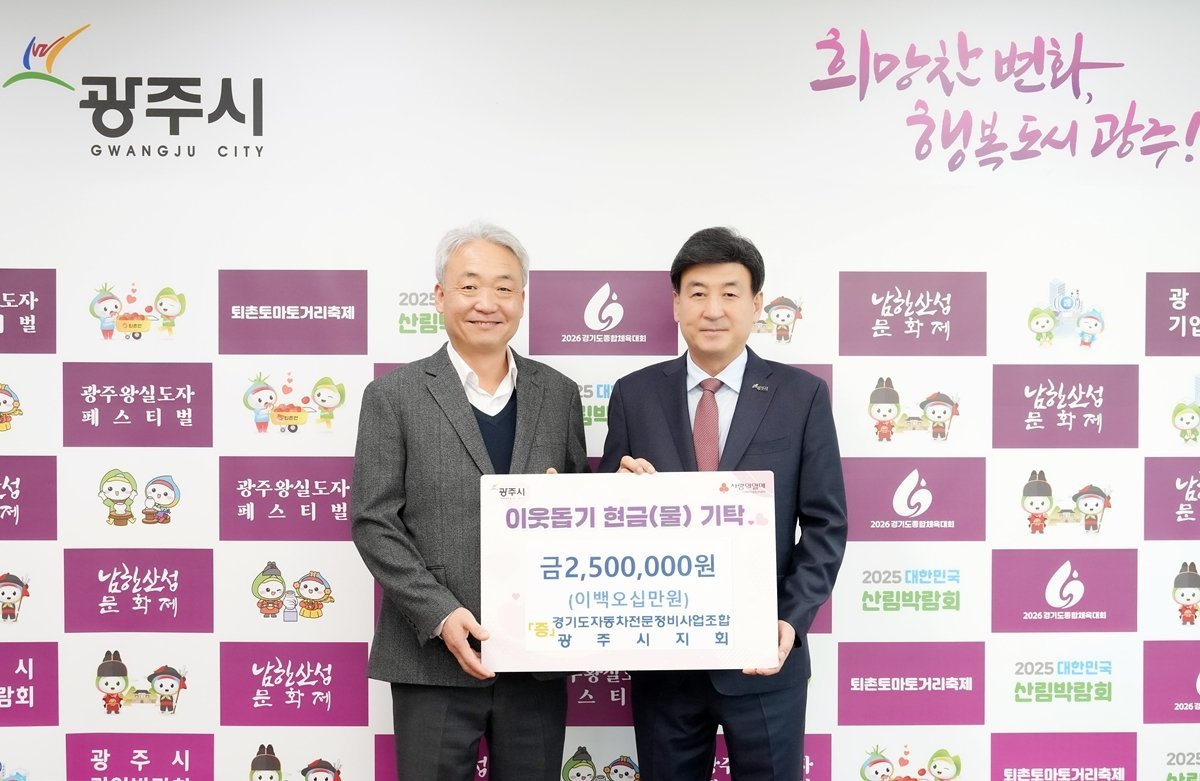 [한국Q뉴스] 경기도자동차전문정비사업조합 광주시지회는 지난 4일 지역 내 저소득 가정을 돕기 위해 성금 250만원을 광주시에 기탁했다.
