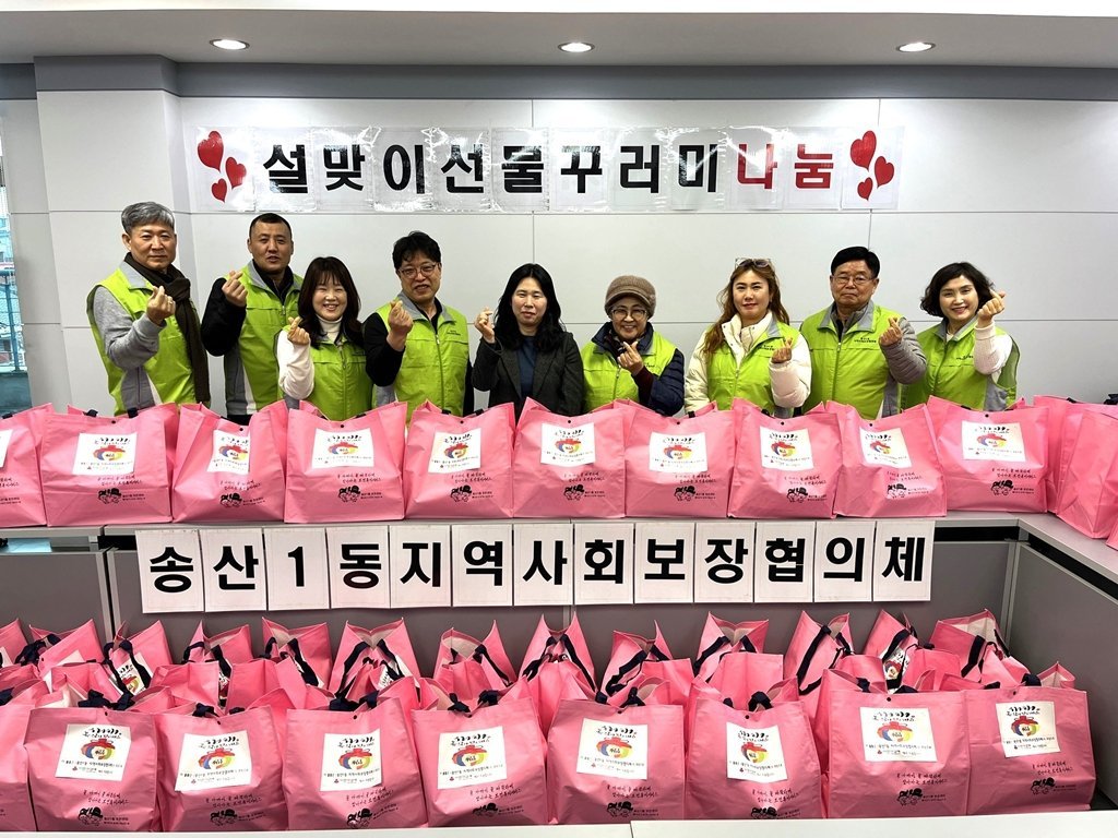 [한국Q뉴스] 의정부시 송산1동주민센터는 2월 4일 송산1동 지역사회보장협의체와 함께 ‘설맞이 선물꾸러미’ 50세트를 제작해 관내 취약계층에 전달하고 안부를 확인했다고 밝혔다.