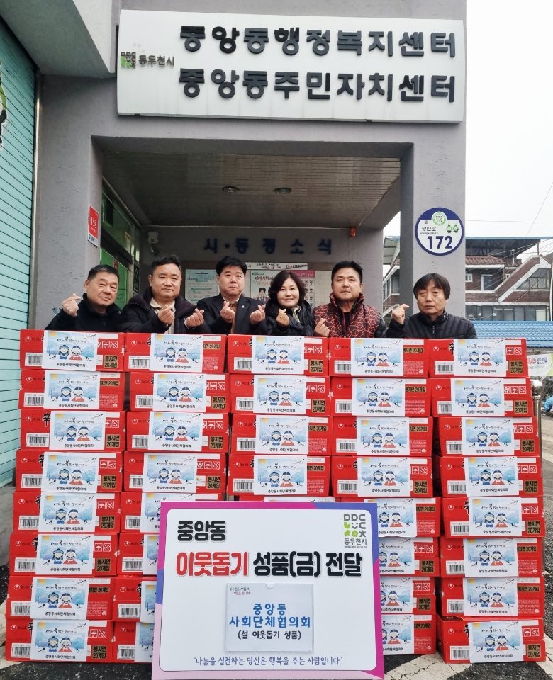 양웅식 중앙동장은 "어려운 여건 속에서도 설맞이 이웃돕기에 함께해 주신 모든 분들께 진심으로 감사드린다"며 "이번 나눔이 명절을 맞은 이웃들에게 작은 위로와 온기가 되길 바란다. 앞으로도 지역 공동체와 함께 따뜻한 나눔을 이어가겠다"고 말했다.