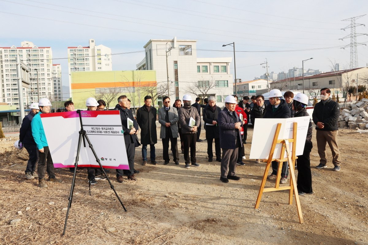 [한국Q뉴스] 양산시장은 2월 5일 08:45분에 명동 1018번지 일대 2만1000㎡ 부지에 조성되는 동부행정타운 부지조성 현장을 방문해 김경숙 시민안전과장으로부터 공사 진행상황과 향후 추진계획에 대한 보고를 청취하고 현장을 둘러보는 등 현장 점검을 실시했다.