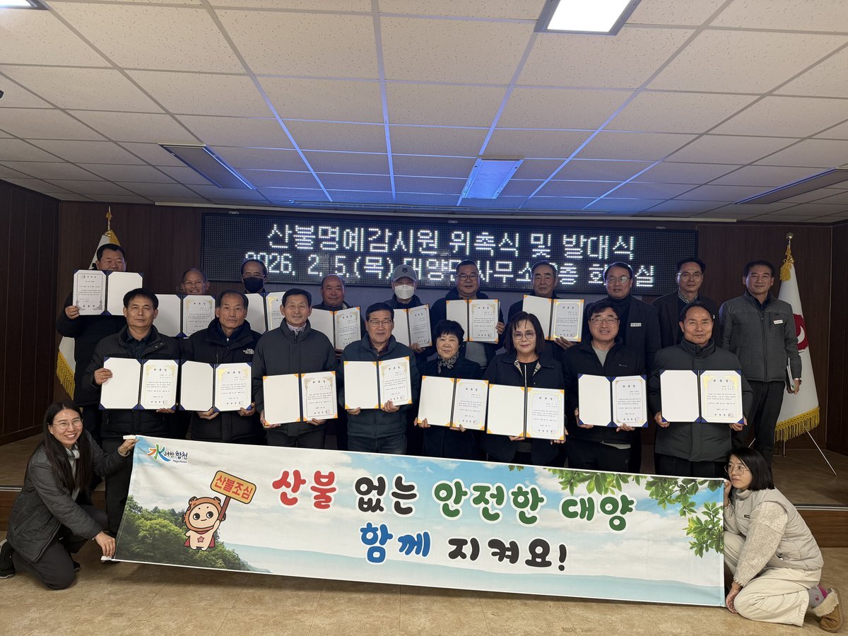 [한국Q뉴스] 합천군 대양면은 2026년 봄철 산불 발생 제로화를 위해 5일 면사무소 회의실에서 산불명예감시원을 위촉하고 발대식을 개최했다.