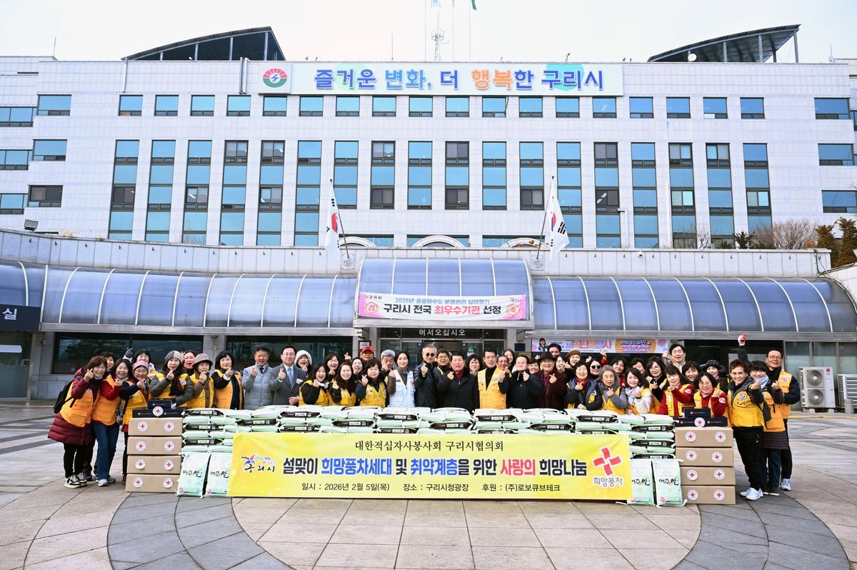 [한국Q뉴스] 구리시는 2월 5일 시청 1층 민원 광장에서 대한적십자사 구리시협의회 주관으로 ㈜로보큐브테크의 후원을 받아 '2026년 설맞이 사랑의 희망 나눔 행사'를 개최했다고 밝혔다.