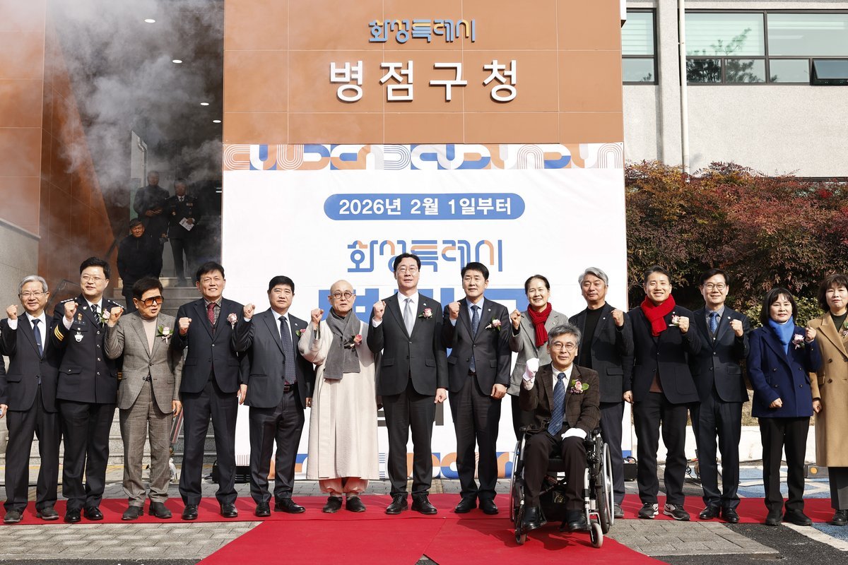 정명근 화성특례시장은 “병점구청 출범은 단순히 행정기관 하나가 늘어난 것이 아니라, 병점구 주민들의 일상과 가까운 곳에서 행정 서비스를 제공하기 위한 행정 체계 개편”이라며 “기존 출장소 체제에서 구청 체제로 전환된 만큼, 민원과 복지 등 생활과 밀접한 행정이 더욱 안정적으로 이뤄질 수 있도록 운영에 최선을 다하겠다”고 말했다.