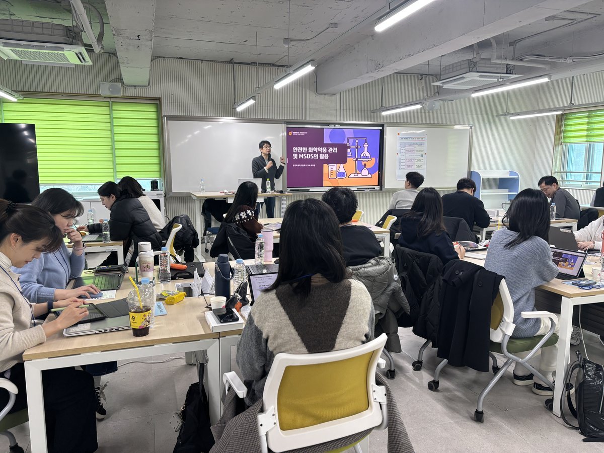 5일 연수의 주요 내용은 △과학실험실 안전관리의 실제 △안전한 화학약품 관리 및 MSDS 활용 △사례로 알아보는 과학실험실 안전 등 학교 현장에서 바로 적용 가능한 실습·사례 중심 프로그램이 운영됐다.