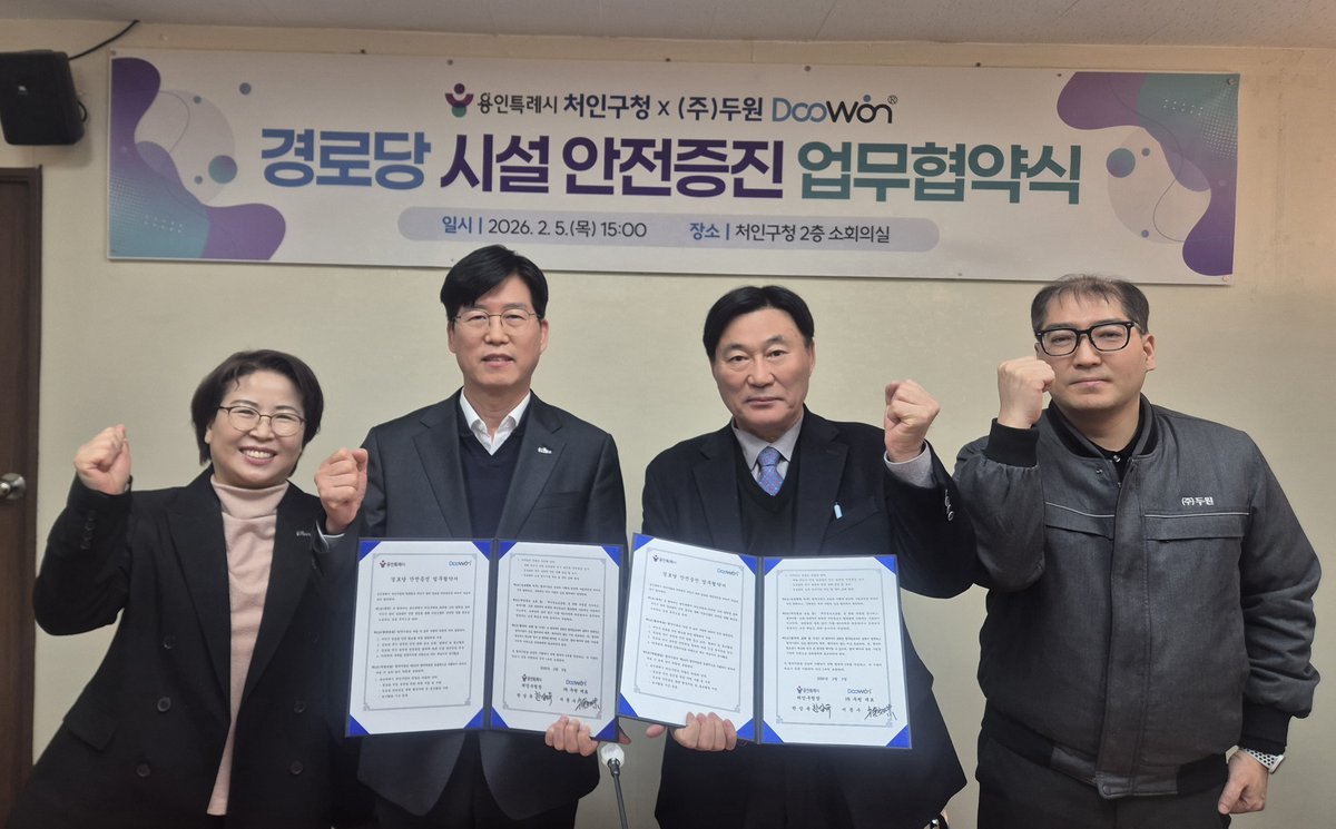 한상욱 처인구청장은 “이번 협약이 민·관 협력의 모범 사례가 되길 바라며 점검을 통해 안전한 경로당 환경을 조성해 어르신이 건강한 여가를 즐길 수 있도록 노력하겠다”며 “기업이 가진 기술력을 활용한 ‘재능기부’에 나선 ㈜두원이 어르신의 안전을 지키는 든든한 버팀목이자 안전한 처인구를 위해 큰 역할을 해주기 바란다”고 말했다.
