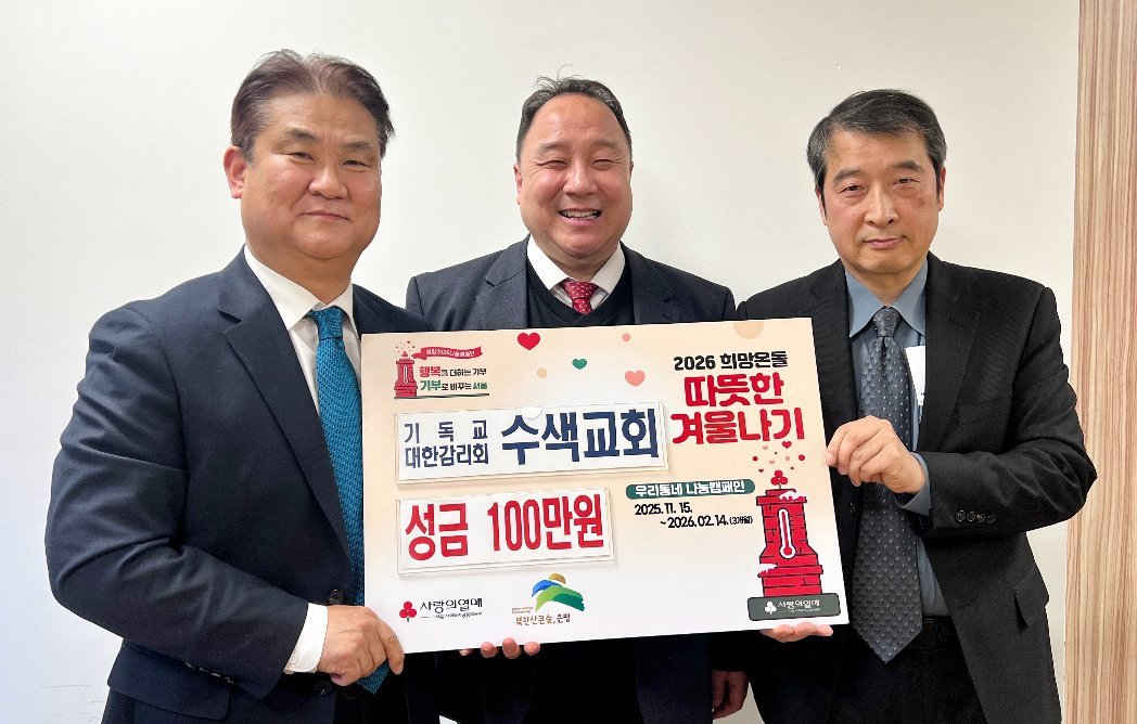 [한국Q뉴스] 서울 은평구 응암2동은 지난 1일 수색감리교회로부터 '2026 희망온돌 따뜻한 겨울나기'성금 1백만원을 전달받았다고 밝혔다.