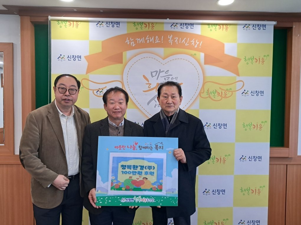 신창면 행복키움추진단 공동단장인 지민영, 박희성 단장은 "지역사회를 위한 따뜻한 나눔을 실천해주신 청목환경㈜에 깊은 감사의 말씀을 드린다"며 "기부해주신 소중한 후원금은 도움이 필요한 이웃들을 위해 의미 있게 사용하겠다"고 말했다.