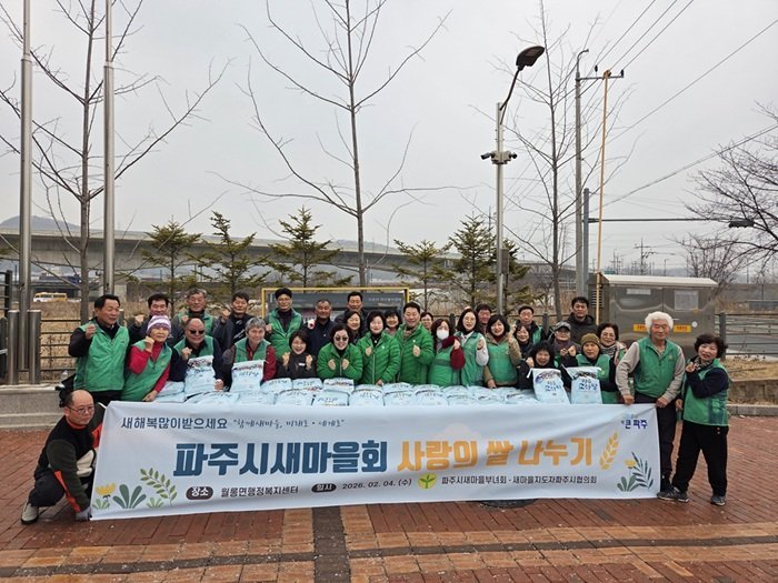 [한국Q뉴스] 파주시새마을회는 다가오는 설 명절을 앞두고 지난 4일 월롱면 행정복지센터에서 ‘사랑의 쌀 나누기’행사를 개최하며 지역 내 이웃들에게 온정을 전했다.
