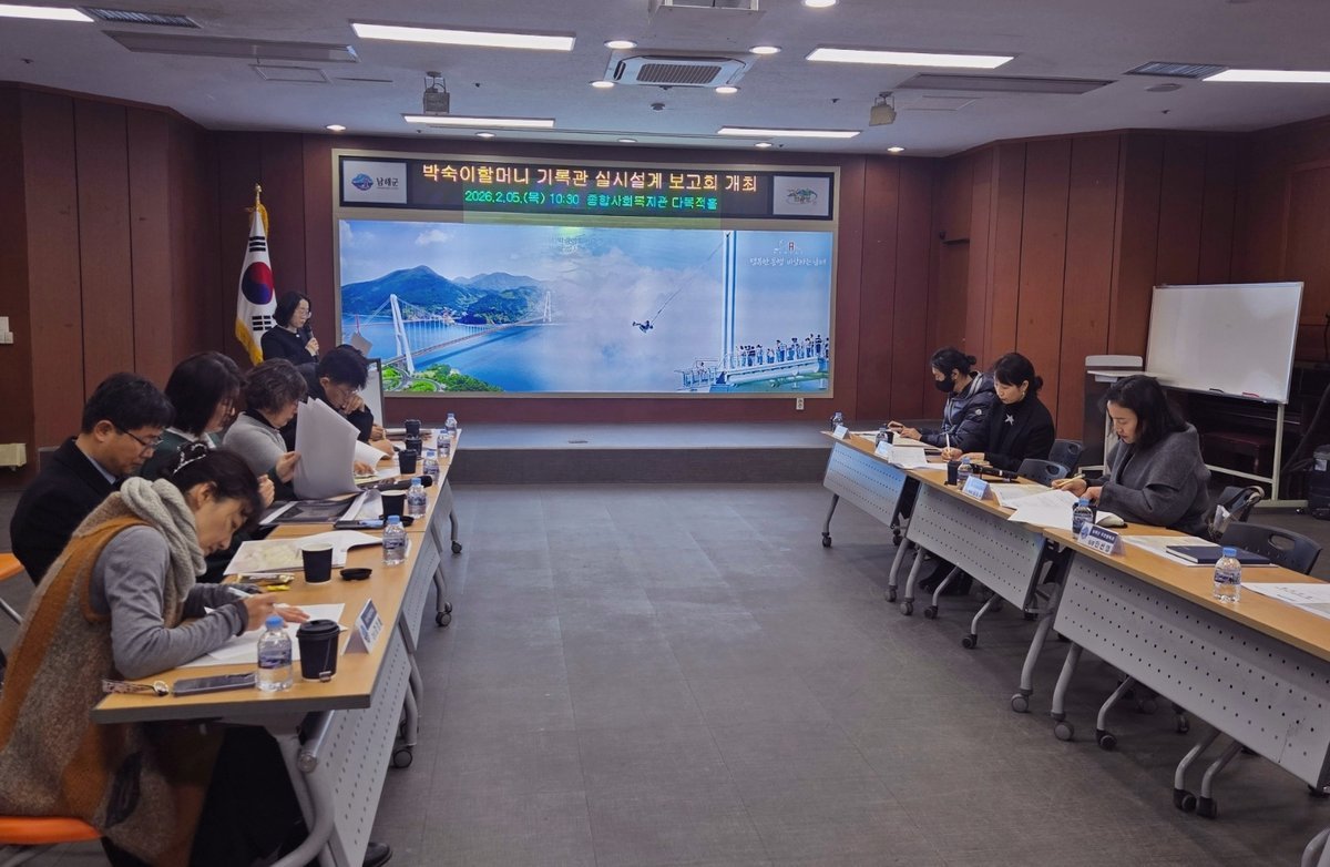 [한국Q뉴스] 남해군은 지난 5일 종합사회복지관 다목적홀에서 ‘박숙이 할머니 기록관 조성 전시 실시설계 용역 보고회’를 개최하고 기록관 조성 방향과 전시 콘텐츠에 대한 전문가 자문을 수렴했다.