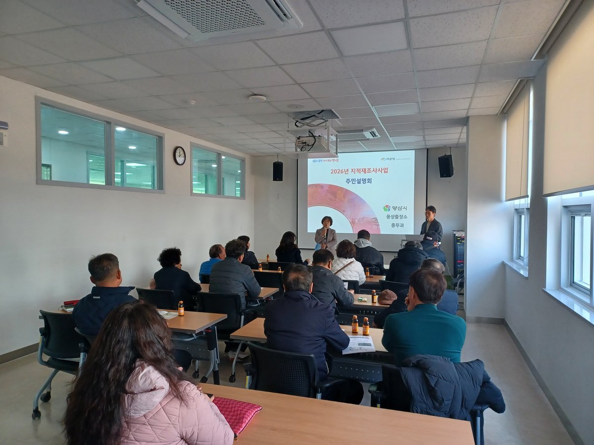 [한국Q뉴스] 양산시 웅상출장소는 지난 4일 출장소 3층 소회의실에서 주진1지구 토지 소유자와 이해관계인 20여명을 대상으로 2026년도 지적재조사 사업추진에 따른 주민설명회를 개최했다.