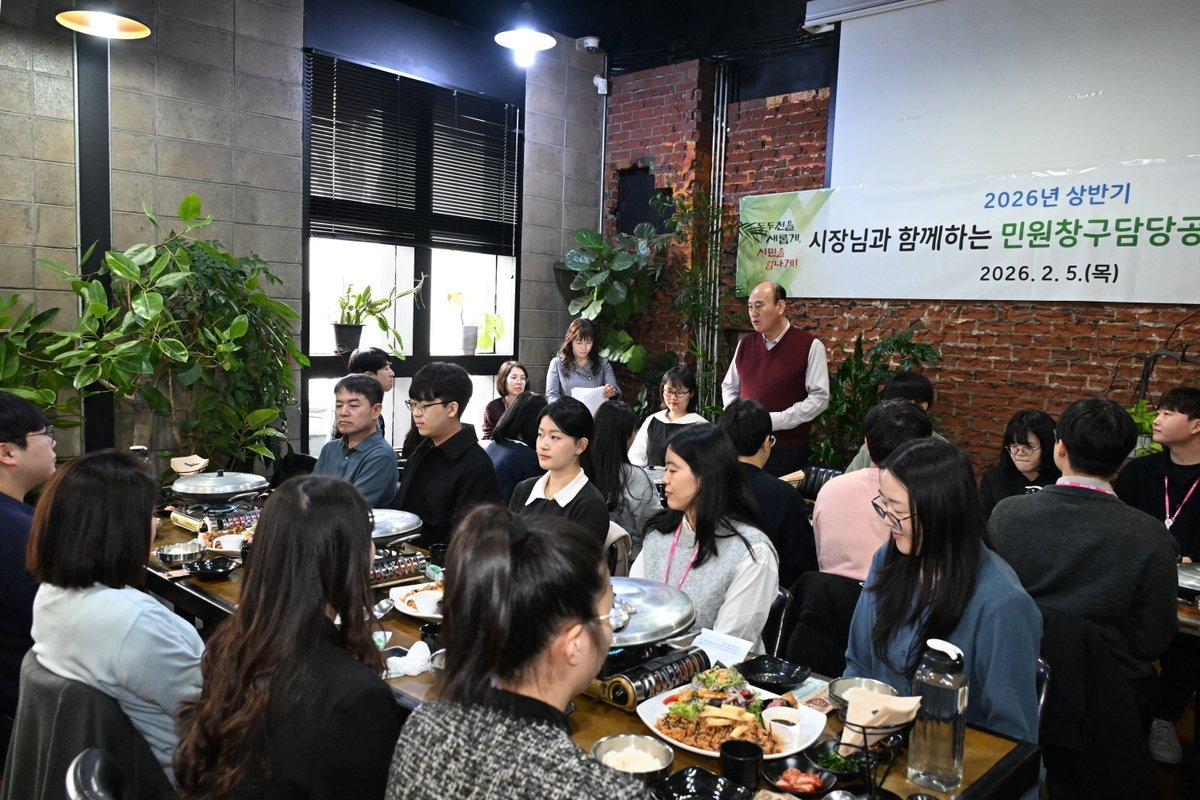 [한국Q뉴스] 동두천시는 지난 5일 민원창구 담당 공무원을 대상으로 2026년 상반기 민원창구 담당 공무원 간담회를 개최했다고 밝혔다.
