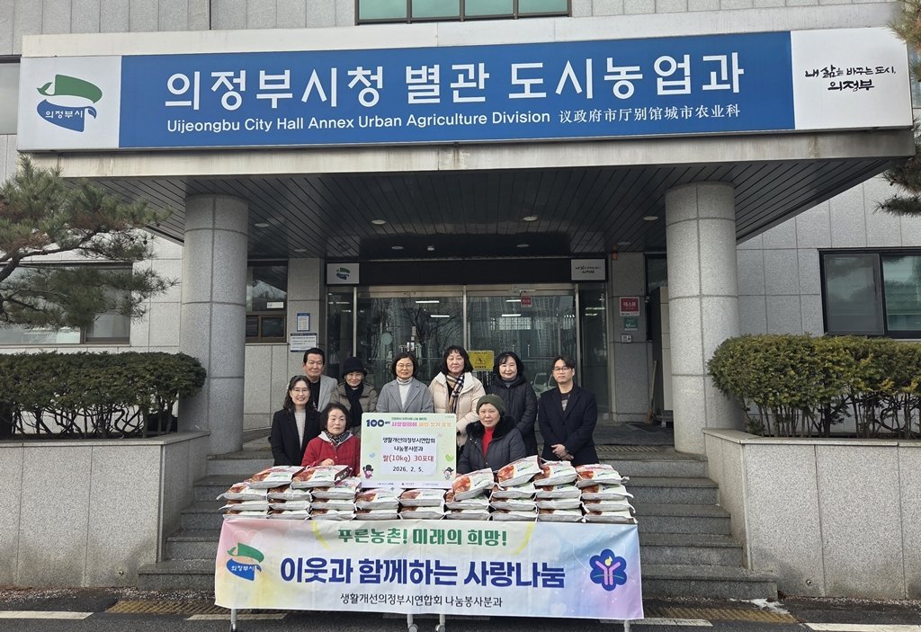 [한국Q뉴스] 의정부시는 2월 5일 생활개선의정부시연합회 소속 나눔봉사분과가 지역 내 취약계층을 돕기 위해 쌀 30포를 기부했다고 밝혔다.