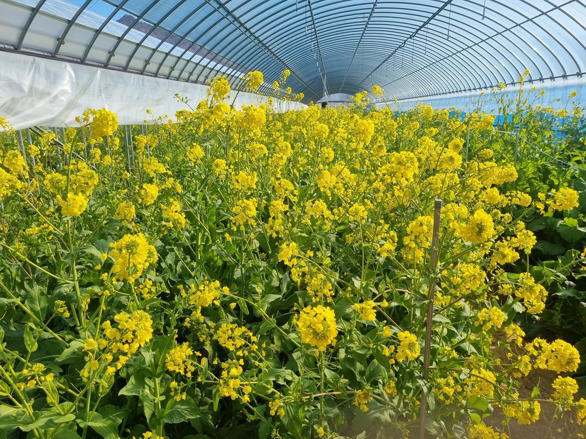 입춘이 지나면서 낮에는 온기가 감돌지만 야간에는 영하의 기온이 이어지는 날씨임을 감안해 비닐온실을 설치하고 전국을 탐색해 선발 수집한 유채 품종 종자를 심어 6개월간의 관리기간을 거쳐 개화가 진행되고 있다.