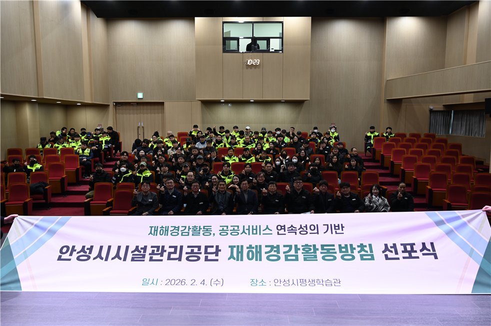 [한국Q뉴스] 안성시시설관리공단은 지난 4일 안성시평생학습관에서 전 임직원이 참여한 가운데 재해경감활동방침 선포식을 실시했다.
