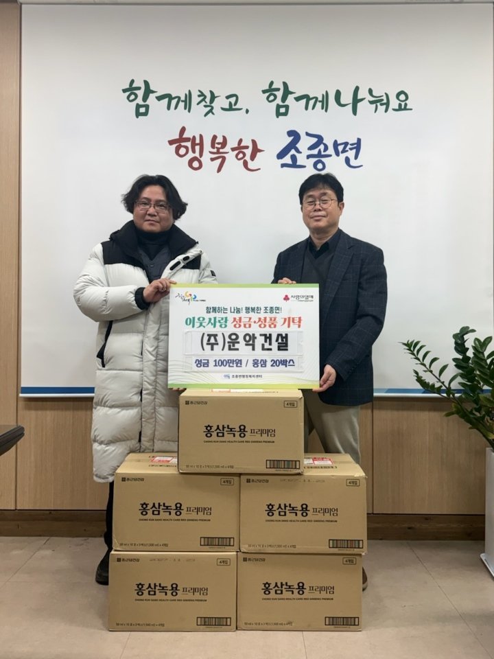 강영금 운악건설 대표는 "우리 주변의 소외 이웃들이 2026년 병오년 설 명절을 따뜻하게 보내시길 바라는 마음으로 성금과 성품을 준비했다"며 "올해도 작은 정성을 전달하며 우리 조종면에 온기가 전해지길 바란다"고 말했다.