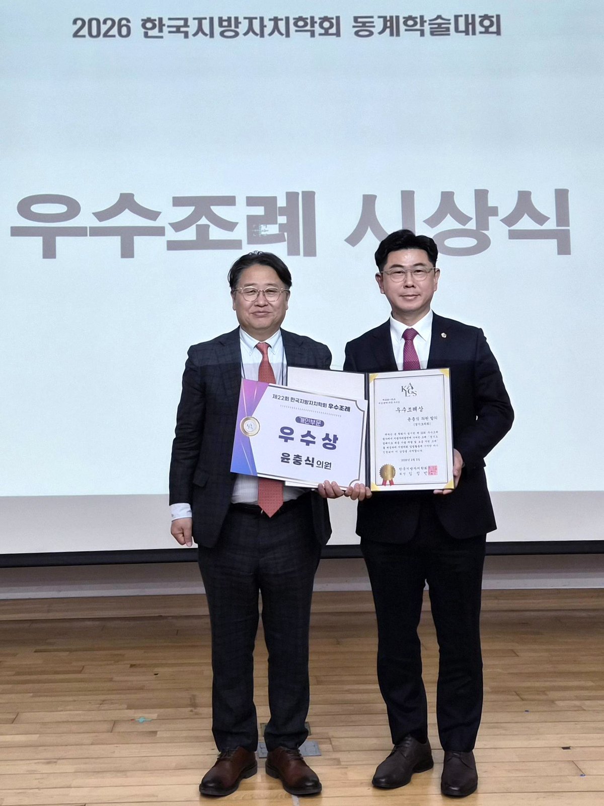한편 윤충식 의원의 이번 수상은 지난 '제20회 한국지방자치학회 우수조례 시상식'에서 '경기도 외국인주민 생활체육 참여 지원 조례'로 개인 부문 최우수상을 받은 데 이은 2번째 쾌거로 윤 의원의 탁월한 입법 역량과 전문성을 다시 한번 입증했다는 평가다.