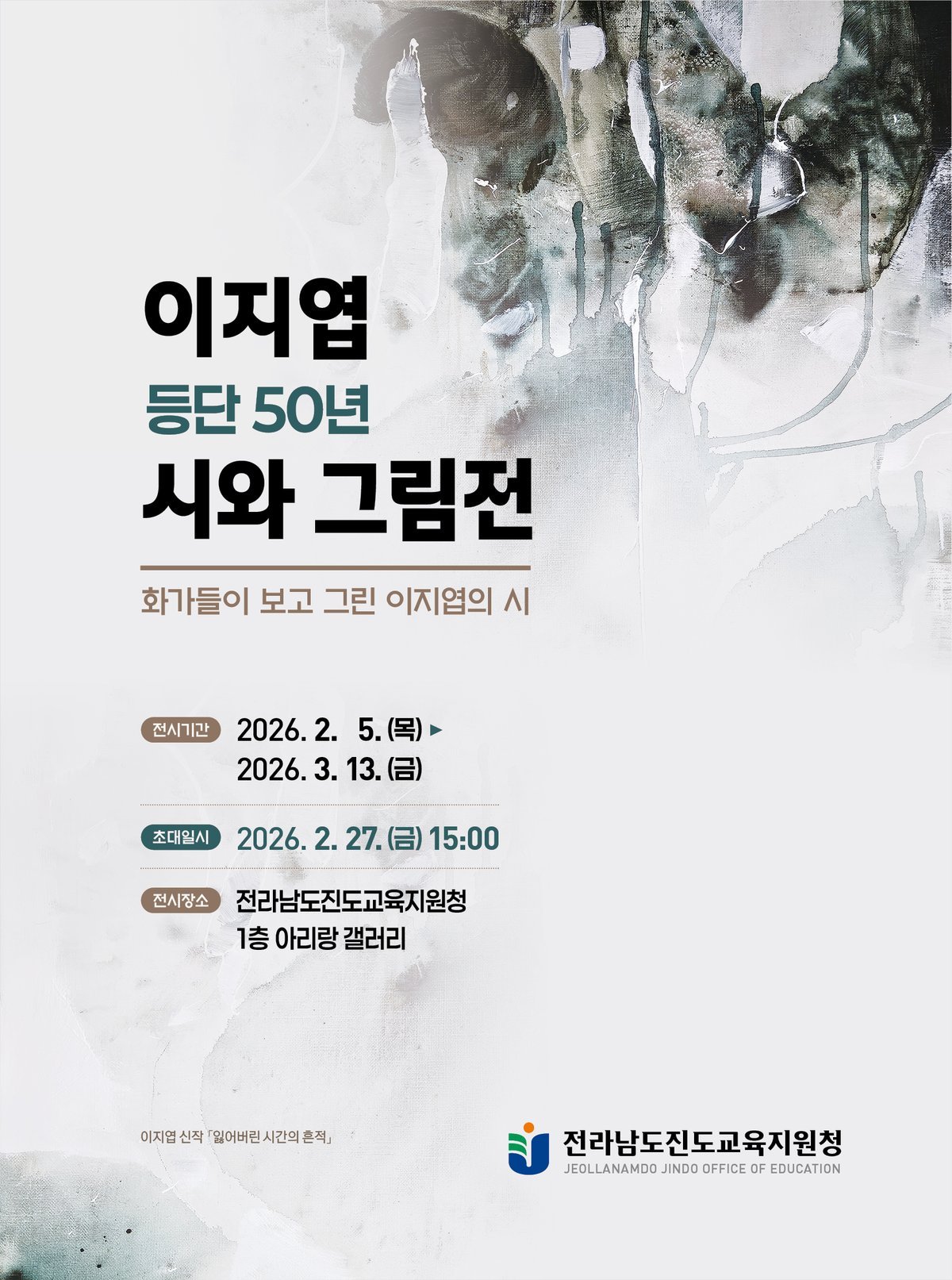 [한국Q뉴스] 전라남도진도교육지원청은 2월 5일부터 3월 13일까지 아리랑 갤러리에서 이지엽 시인 등단 50년을 기념하는 『시와 그림展』을 개최한다.