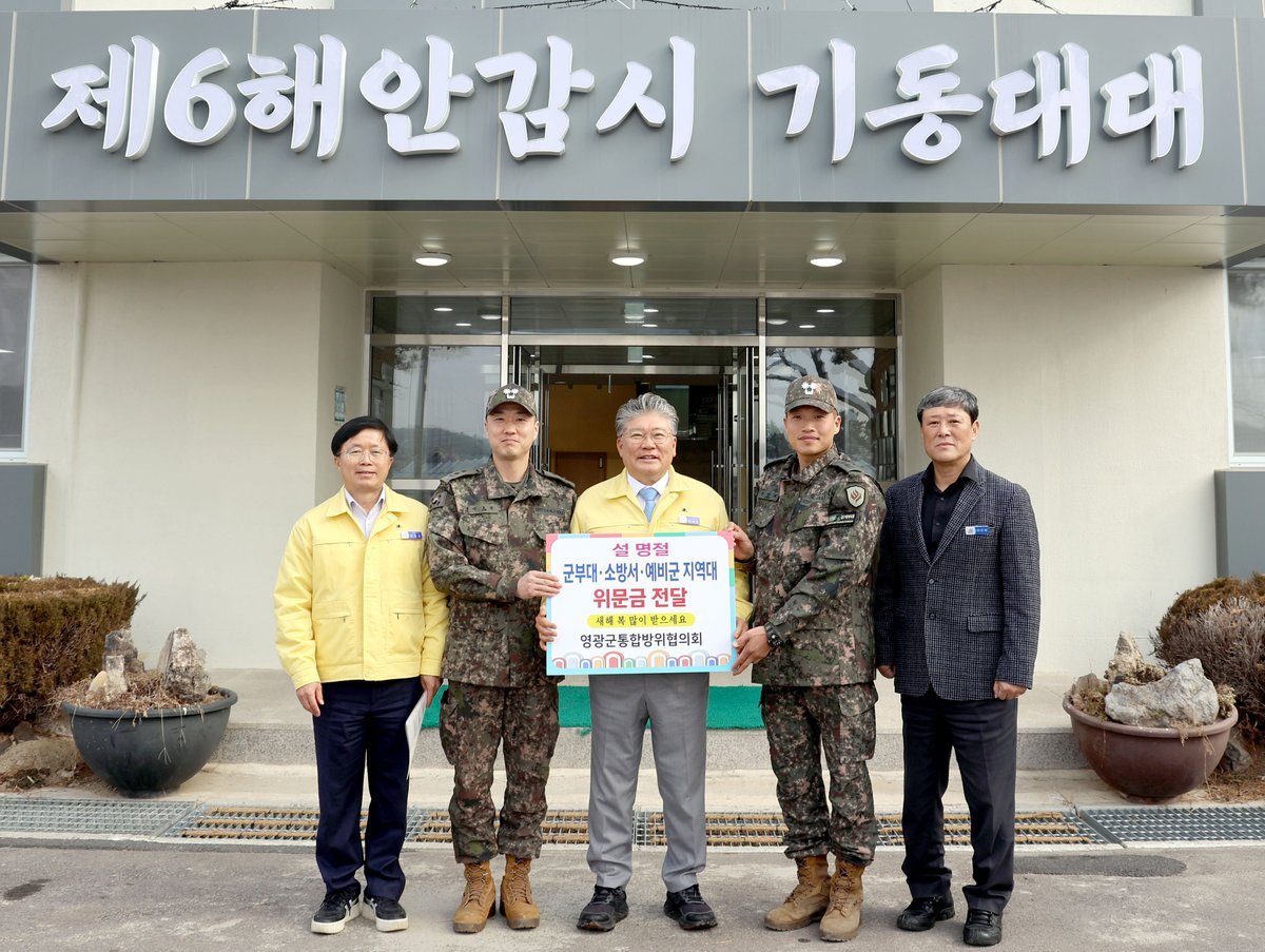 [한국Q뉴스] 영광군 통합방위협의회는 지난 5일 민족 최대의 명절인 설을 앞두고 영광소방서, 제96여단 2대대, 6해안감시기동대대, 예비군 지역대를 방문하여 지역방위태세 확립과 군민 안전을 위해 최선을 다하고 있는 군장병과 대원들을 격려하고 위문금을 전달했다.
