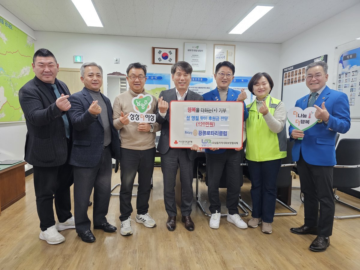 [한국Q뉴스] 남양주시는 지난 6일 광릉로타리클럽이 설 명절을 맞아 오남읍 지역사회보장협의체에 지역 내 소외된 취약계층을 돕기 위한 후원금을 전달했다고 9일 밝혔다.